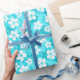 Tropical Blue White Hibiscus Flowers Pattern Wrapping Paper
