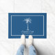 Add your own special touch to this simply elegant design featuring your family name or phrase and established date in white text and palm tree framed in a white border over a classic blue background.