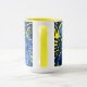 Another stylish mug by JessicaAmber - ask about custom orders! This customisable coffee cup features large monstera jungle leaves in royal blue, on a bright yellow background. You can change the background colour. Makes a great gift for your mother or wife!