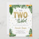 2ND Birthday invitation in tropical style, with tropical leaves and yellow floral for kids who were Born Two Be Wild.