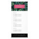 Elegant rack card design displays your services, price list or business information beneath a border of lush green botanical jungle foliage. Personalise with your business name in modern white lettering on a band of contrasting bright pink. Includes four customisable headings and body text fields, and space for your business contact information along the bottom. To adjust layout, enter your text and then use the Customise function to change positioning and font sizes.