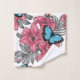 Hand -drawn bouquet of tropical flowers, palm leaves and butterflies