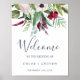 This tropical breeze welcome wedding poster is perfect for an elegant spring or summer wedding. The floral design features red, burgundy, blush and white flowers on a bed of watercolor eucalyptus and tropical greenery with a relaxed Hawaiian feel. Customise the poster with the name of the bride and groom, and the date of the wedding.