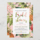 This unique bridal shower invitation features a beautiful tropical pattern with golden typography.