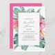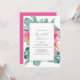 Wondering "Where can I find tropical bridal shower invitation templates online?" visit Do Tell A Belle in the Zazzle marketplace at https://www.zazzle.com/store/dotellabelle and celebrate with invitations designed with hand painted art by Florida watercolor artist Victoria Grigaliunas. This invitations features a boarder tropical florals in shades of vibrant pink and orange with palm leaves in shades of green. The invitation card reverses to a vibrant pink.