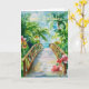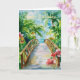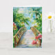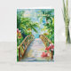 A Watercolour tropical bridge and flowers. Suitable for a birthday for anyone