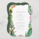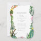 Elegant Tropical Botanical wedding invitation. White and Emerald Green. Bride parents listed. Simple Script. Contact designer for changes to this design (colour, parents, number of venues) Bracket. Cactus.