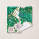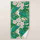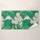 Lush tropical pattern of white camellia blooms and blue eyed green chameleon lizards in the jungle
