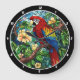 Tropical Canopy Time" - Stained Glass Parrot Large Clock