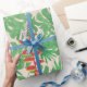 This exotic and fun pattern is made of palm leaves, monstera leaves and heliconia flowers in watercolor.