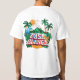 This vibrant illustration showcases a tropical landscape with palm trees, a mountain range, a wave, and colorful flowers, all surrounding the bold "CASA BLANCA" lettering. The design has a playful, beachy aesthetic with warm colors like orange, green, and blue, evoking a laid-back, summer vibe.