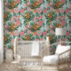 Tropical Cheetah and Flamingo Floral Wallpaper