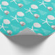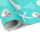 Pretty aqua blue, tropical themed gift wrap on a roll. With a pattern of sea stars (starfish), sand dollars, ball ornaments and a swirly Christmas tree, this paper will fit perfectly in a warm climate, or coastal home.