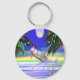 A 3d tropical holiday image with a cute dolphin celebrating Christmas by wearing a red hat and holding a candy cane between decorated palm trees.