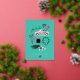 Celebrate the festive holiday season with our fun tropical, festive and colourful holiday card. Our festive tropical design features a green background with a pink convertible car carrying palm trees in the back, palm frond wreath, palm trees with lights, a present, and the words fa la la and let's roll. Gold foil elements are added on some of the items. The reverse side is our fun topical Christmas pink convertible pattern. All artwork contained in this girly and fun topical Christmas & Convertable holiday card is hand-drawn original artwork by Moodthology Papery.