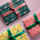 Celebrate the festive holiday season with our fun tropical, festive and colourful holiday wrapping paper sheets. Our festive tropical design features three different complementing designs and colours. This fun Christmas pattern incorporates ribbons, pink and green convertible car carrying palm trees in the back, palm frond wreath, and the words fa la la and let's roll. All artwork contained in this girly and fun topical Christmas & Convertable wrapping paper is hand-drawn original artwork by Moodthology Papery.
