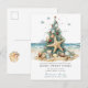 This festive tropical Christmas moving announcement card features a Christmas tree adorned with beach shells. The card is perfect for sending to friends and family during the holiday season to let them know about your new address while also incorporating your love of the tropics. The front of the card features the Christmas tree with beach shells and the saying "Holiday Greetings from our new home sweet home" The overall design is festive and unique, and the card is sure to put a smile on the faces of your loved ones.
