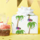 Palm tree with Christmas gifts and holiday ornaments on white.