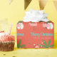 This custom Christmas holiday wrapping paper features a cute cartoon illustration. Two pink flamingos are having a party with gifts and Christmas lights. A cute little snowman is standing in front of a tropical palm tree. The background is a vibrant orange colour.