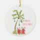 Tropical Christmas with Palm Tree Presents Coastal Ceramic Ornament