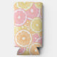 Seltzer Can Cooler with a tropical citrus fruit pattern in happy summer colours with a personalised text - Kate Eden Art.