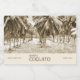 Our personalised mini bottle labels design feature a coconut palm tree farm image in sepia brown, for an old world and traditional feel combined with simple and modern custom text, perfect for your Coquito bottles, a traditional Puerto Rican coconut drink for Christmas and the holidays!