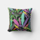 Tropical Colourful Banana Leaves Black Pattern Cushion