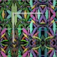 A stylish and trendy rainforest earth illustration, multicolor banana leaves tropical design, perfect for a vibrant summer botanic nature look decor. Features colourful exotic banana leaves jungle foliage painting, filled with pink, green, blue, teal, turquoise, yellow, purple, violet, and grey colours banana plant artwork, unique faded banana leaf shapes jungle greenery pattern, on a black background.