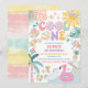 Celebrate your little ones first birthday in style with this tropical "Cool One- party invitation. Featuring playful summer illustrations like palm trees, flamingos, popsicles, pool floats, and a smiling sun, this design sets the perfect vibe for a fun poolside celebration. The bright pastel accents and festive theme make it ideal for summer birthdays, tropical parties, or beach gatherings. Personalise easily with your childs name, party details, and RSVP information to create a unique keepsake for guests.