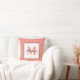 Nautical Boutique Co.'s tropical coral patterned monogram pillow features your choice of initial, number, or symbol in coral with white leaves line art design with any name or word overlaid. The monogram is set inside of a white square with matching border in a lighter shade of coral to make it pop visually, and the outer border of the design is a matching coral and white line art print pattern. #Monogram #Coral #ModernDecor #GiftIdeas #Tropical