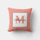 Tropical Coral & White Leaves Patterned Monogram Cushion