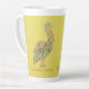 Mosaic, graphic drawing, of a Tropical crane, displayed in-exotic, island patterns, of, orange, olive-green, taupe, yellow, brown, black, and white.