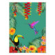 A vivid scene showcasing tropical flowers and plants. A toucan with its striking beak, perches gracefully among the foliage, while a hummingbird flits through the air with its iridescent wings. The artwork is burst with colour and is a reminder of our beautiful nature.
