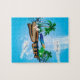 Tropical design with surfboard, palm and flowers jigsaw puzzle