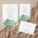 These tropical destination wedding invitations feature a bottom boarder watercolor monstera palm leaves. The word "Wedding" is set in trendy script typography in emerald green. Use the template fields to add your custom information. Perfect for weddings in Mexico, Hawaiian Island, Florida or any tropical beach location. To see the entire wedding theme visit www.zazzle.com/dotellabelle