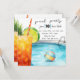 Big tropical drink with lime and pineapple is the forefront of this pool party invitation that you can customise. The pool set in the background has a rainbow-coloured beach ball floating in the pool. Add more information for your guests on the reverse of this card. The reverse also has the same illustration. Personalise this for your pool parties, spring gatherings and birthday celebrations. Designed by mw1designsart.