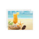 Postcard shown with a photo print of a tropical drink on the beach.