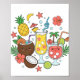 Tropical Drinks brings the cheerful energy of summer to your everyday products. Featuring cute flat vector illustrations of tropical cocktails with pineapples, coconuts, and colorful garnishes, this design is perfect for T-shirts and mugs. The vibrant yellow, coral, and turquoise palette captures the sunny, playful spirit of tropical vibes. Ideal for summer lovers, beach enthusiasts, or anyone who wants a fun splash of paradise in their wardrobe or kitchen.