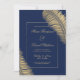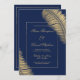 Classic elegant stylish tropical navy blue and gold sophisticated trendy palm tree foliage wedding invitations.This ampersand leaves design is perfect for a trendy and stylish party event. Customise this design with your own message and personalised information. All designs are printed.
