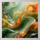 Vibrant emerald green and molten amber gold flow together in luxurious, fluid waves in this stunning abstract design. The glossy, translucent swirls create a mesmerising sense of motion and depth, beautifully framed by lush tropical leaves and delicate pink-orange flowers. This exotic, high-energy pattern radiates warmth, vitality, and modern tropical elegance.