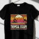 Here's another trending vintage-style t-shirt design featuring a retro mountain landscape with a sunburst background and the phrase "TROPICAL ESCAPE". Let me know if you’d like any changes! 🌄✨
