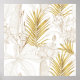 Tropical exotic floral line golden palm leaves and flowers seamless pattern, line background. Exotic jungle wallpaper.