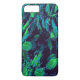 The abstract fabric pattern by HomeWare on this iPhone 8 Plus/7 Plus Case was created from an original photograph of a royal poinciana tree. Some of the tree’s tropical leaves are in sunlight, in bright yellow greens. Others are in shadow, in shades of blue from aqua to deep teal, with purple highlights. The background is almost black. The design has an overall fabric texture.