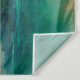 This is a watercolor tropical fantasy view in turquoise and orange tones, depicting the sky, clouds, sea, palm trees during sunrise.