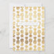 Tropical Pineapple Gold Wedding save the dates featuring a golden pineapple front and centre with a striking pattern of pineapples on the back.