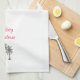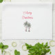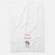 Tropical Christmas kitchen towel, with a palm trees drawing illustration and script typography. With customisable lettering, you add your own information. A festive accessory for your holiday kitchen accessories.