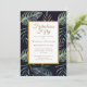 Elegant watercolor green tropical leaf pattern on black with gold frame fifty and fabulous, 50th birthday party invitation