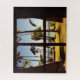 Tropical Fiji Beach Scene - Photograph of a beach in the Fiji Islands with palm trees, hammocks and a picnic bench seen through the open shutters of a beach hut.
