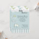 This baby shower design comes with tropical fish chasing bubbles. There is a wave of water at the top setting over thin lines with diamond shapes and dashes underneath. The stripes at the bottom complete the front and there is a flip side on back where you can add more shower information if needed.
