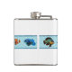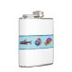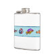 The flask itself is fine. It’s a cheap flask, obviously bought in bulk, however am prepared to overlook that. Given that it is a personalized item, I would have liked to have seen gift boxing instead of the generic packaging. Terrible printing, and/or quality. It’s a cheap, tacky vinyl. It is not cut straight and is also applied in a way that it is overhanging the bottom, causing the glue to catch on items and it will eventually roll and tear, damaging the wrap.